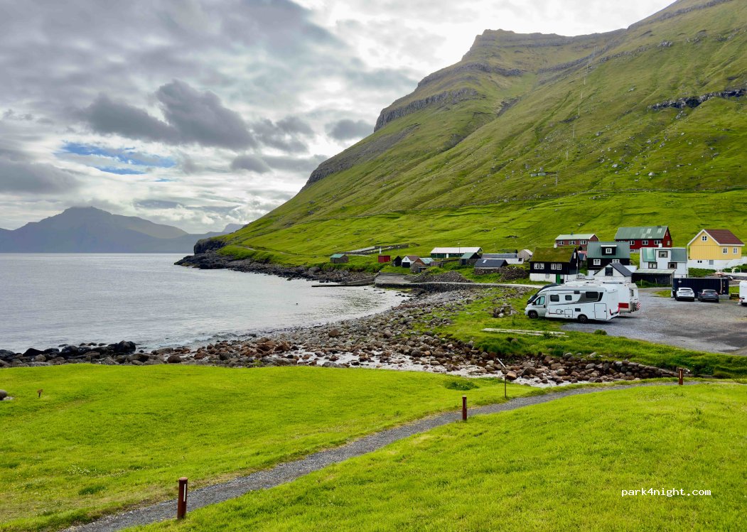 Schöner, kostenloser CP in einem der schönsten Färöer Dörfern. Freundliche Bewohner. VE nahebei. Wanderungen ab hier möglich. Wer wie wir hier länger stehen möchte sollte sich vorab die Tally Card für den Stromanschluss besorgen. Diese Karte konnten wir uns auf den Inseln nirgendwo besorgen.
