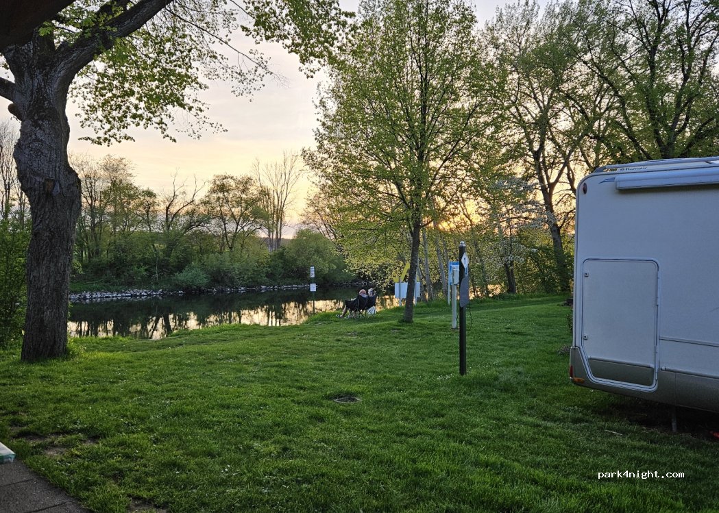 Gemütlicher Platz auf einer Wiese mit Bäumen direkt am Main. Stellplätze sind nicht riesig, aber im August nicht voll, also kam keine Enge auf. Wir haben vor Ort über den ausgehängten QR-Code gebucht und das Geld in den Briefkasten gesteckt. Ganz sympathisch unkomplizierter Platz. Stechmücken gab es keine.
