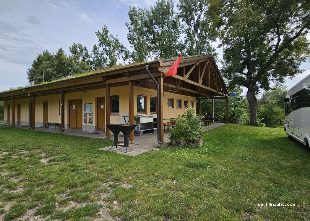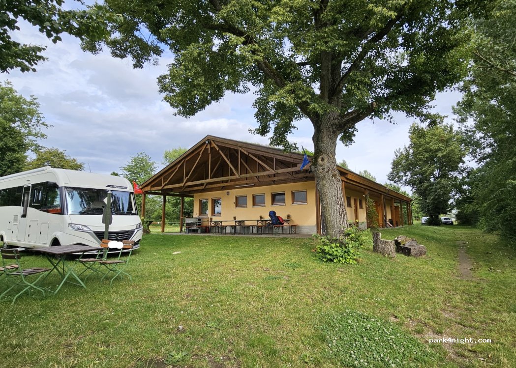 Toller Platz, Gaststätte mit Biergarten unter Schatten spendenden Bäumen direkt um die Ecke, 10 Euro für ein Wohnmobil mit zwei Personen, Strom auf Wunsch für 3 Euro. V / E möglich. Schattige Stellplätze mit ausreichend Platz, wir kommen gern wieder.