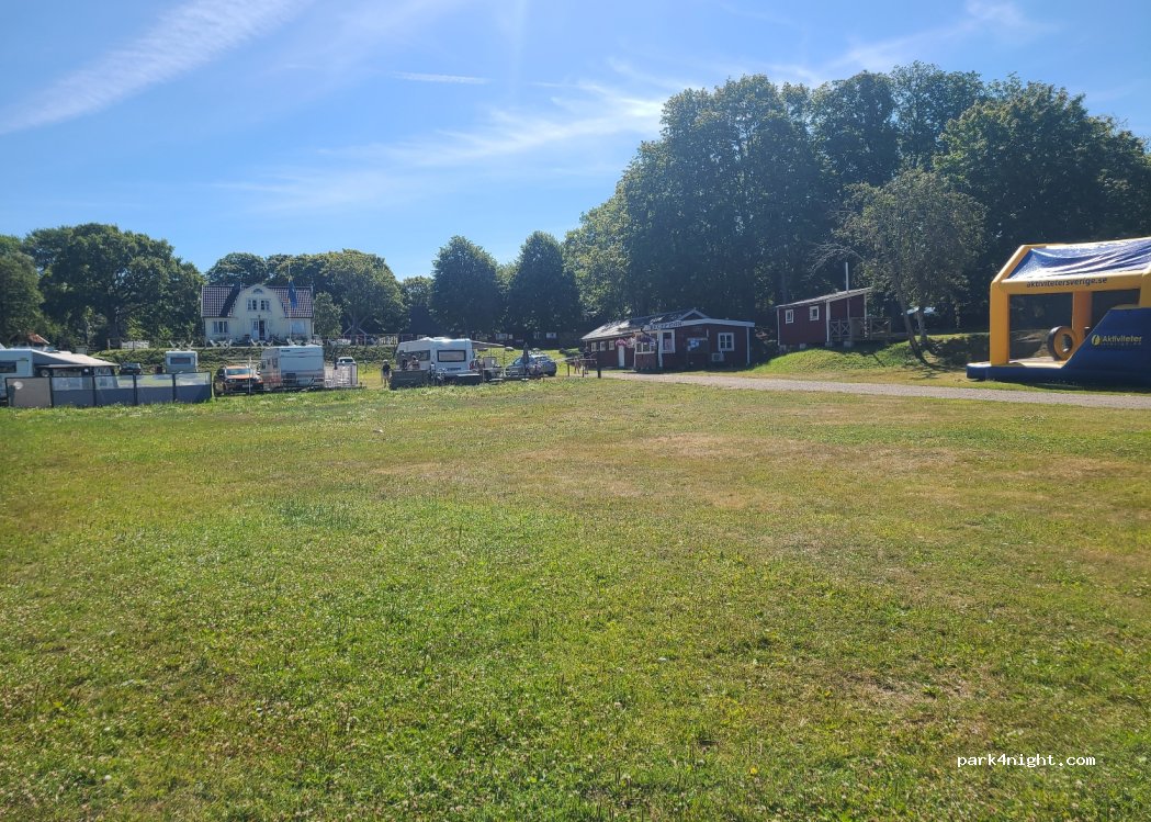 Ruime plaatsen. Scheiding tussen familiecamping en natuurcamping. Douche is in houten gebouwtje, maar functioneert naar behoren. Leuke zwemgelegenheid in haventje. Mogelijkheden voor grijs- en zwartwater lozen aanwezig. Afwas ook met warm water. Prijzen 2022: laag seizoen zonder elektriciteit 180 SEK en hoog seizoen (20 juni-21 aug) zonder elektriciteit 220 SEK.