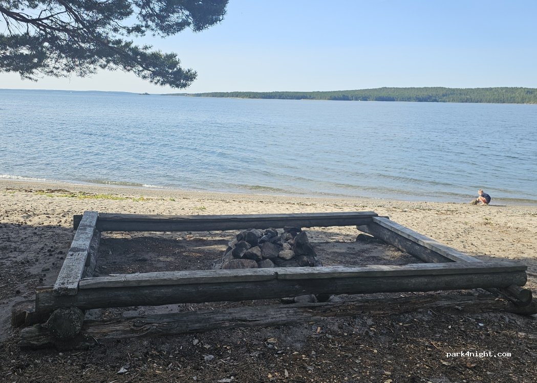 Sehr schöner großer Platz mit einem Sandstrand und einer Schutzhütte mit Grillstelle. Wir waren am 18.6. hier, sind aber weitergefahren, da der Platz aufgrund der Wettersituation voll im Wind lag und daher sehr kalt.
