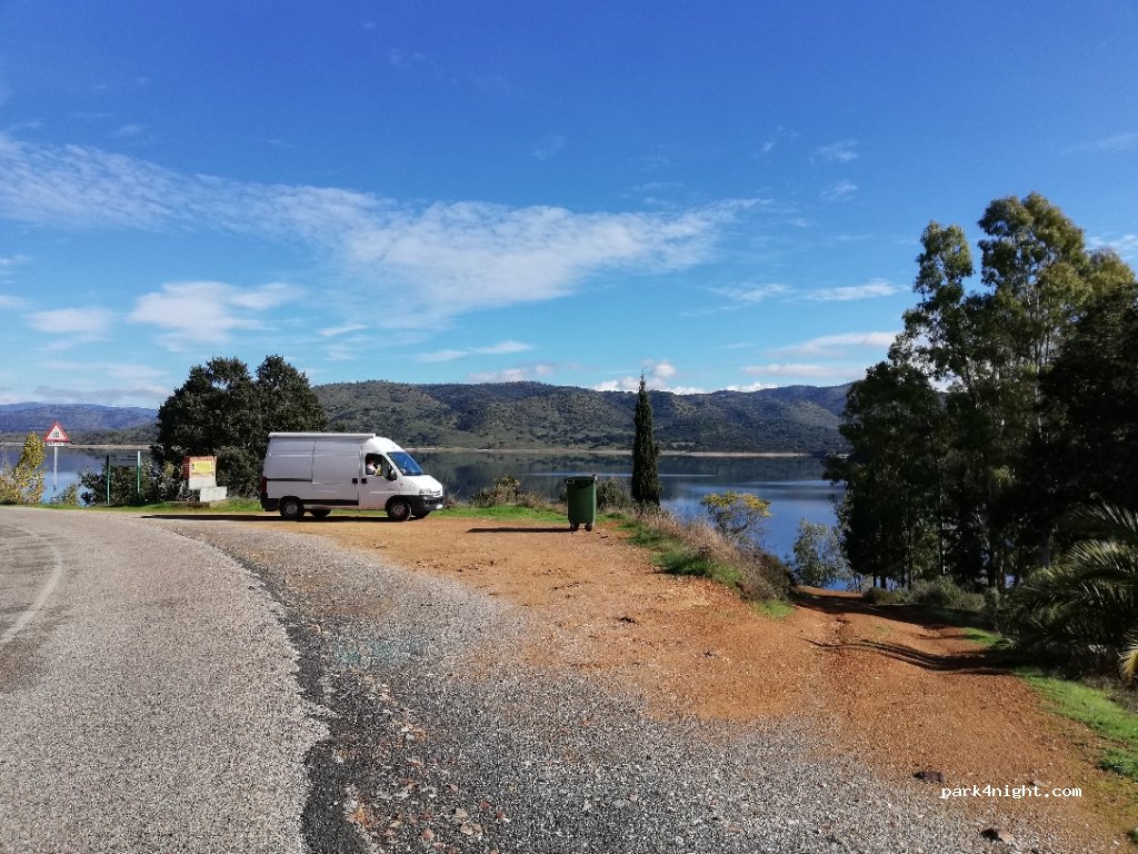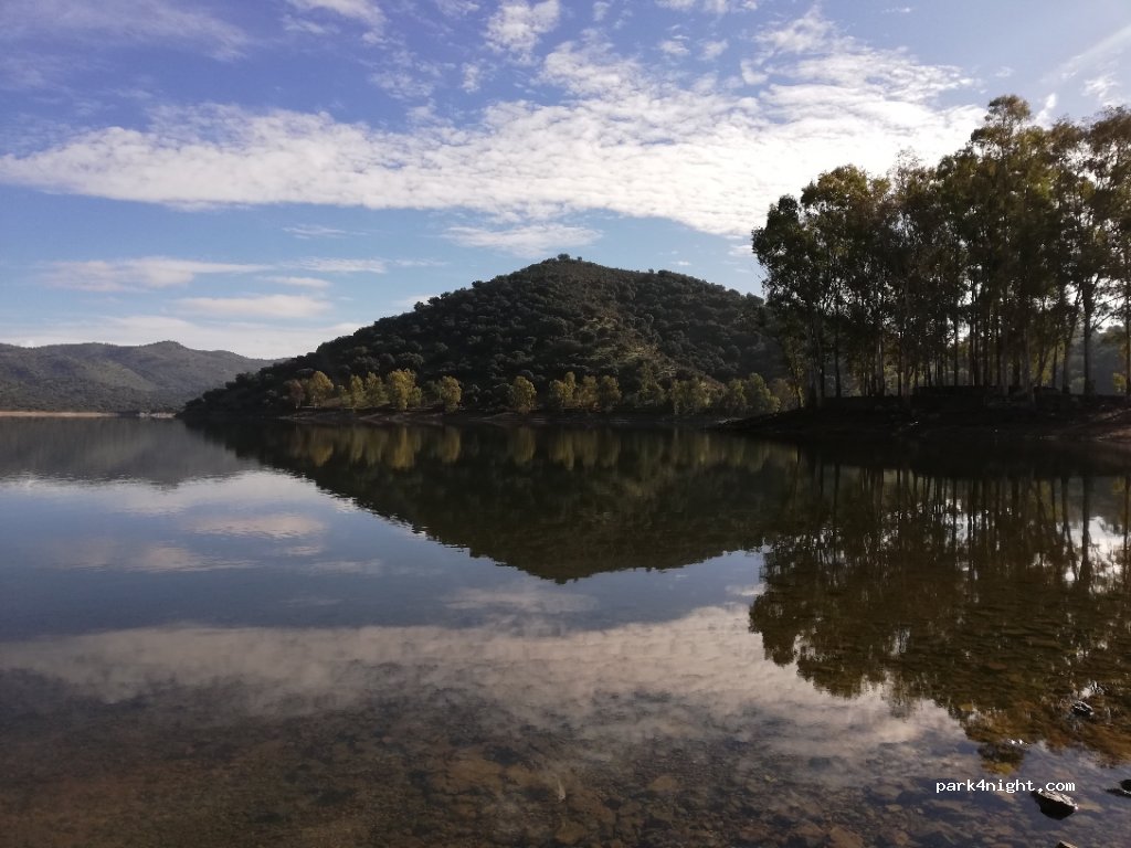 lugar tranquilo dentro del pantano, no suele molestar la guardia ni nada ya que los pueblo están bastante lejos a 18 km Cazalla, cerca por de día tenéis la cantina que dan de comer bastante bien.