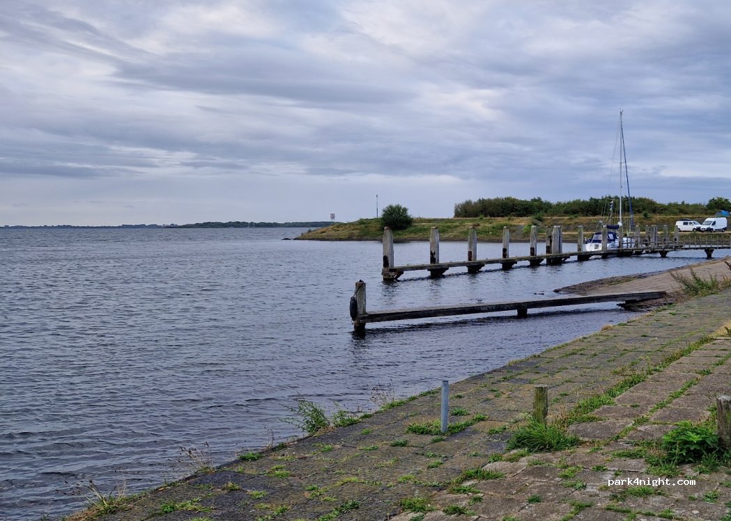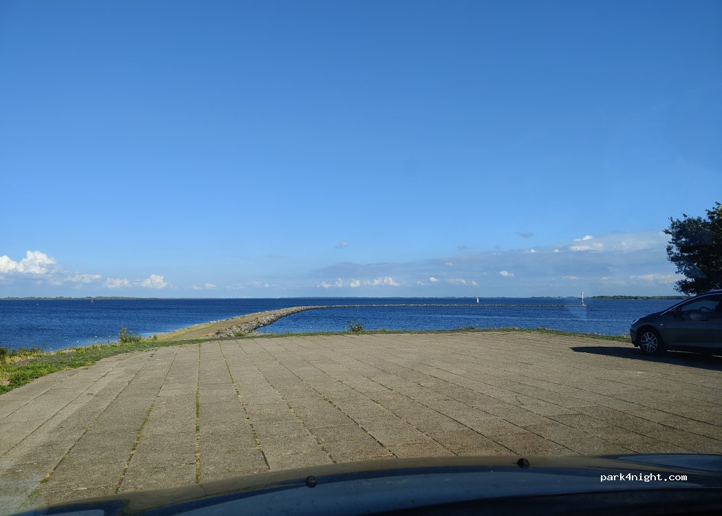 The sign tells you you are not allowed to sleep here overnight. there are other cars but those belong to the boaters that are away on their boats. police came by. There are free to use toilets. Nice view over the water.