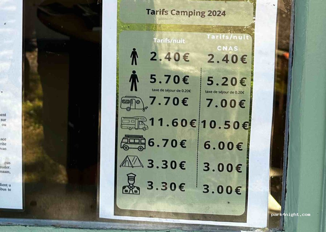 Accueil très sympa, peu de monde. Sanitaires, bien que vieillots, très propres. Nous avons payé 16,4€ pour 2 adultes, 2 chiens (gratuits), un fourgon aménagé et l'électricité. Nous avons même pu emprunter un adaptateur pour l'électricité. Nous reviendrons !