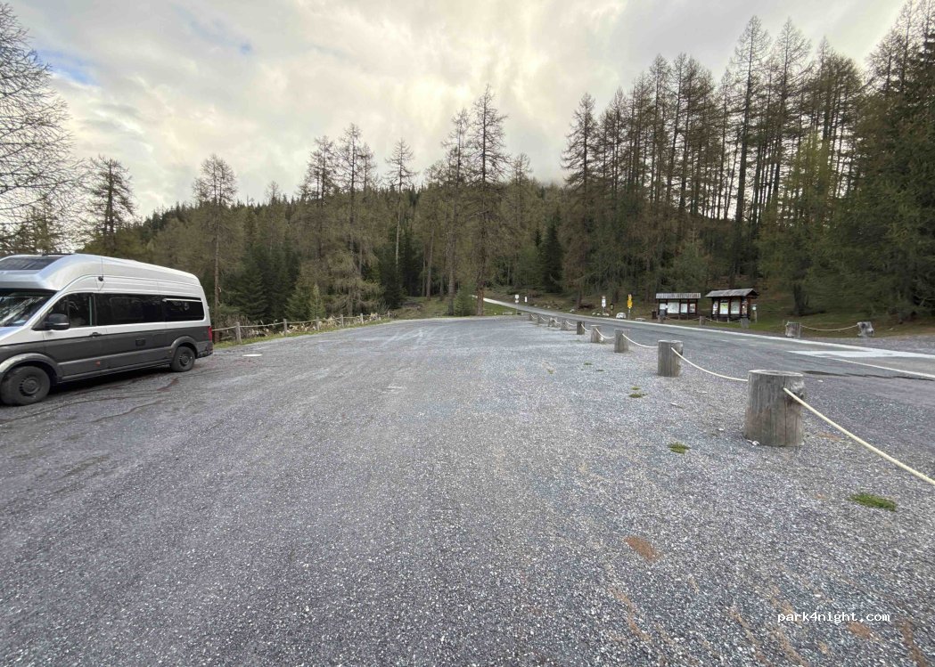 Parking at the Swiss National Park, opposite the “Prasuras” restaurant. Superb setting, quiet, water fountain. Children's games next door. At the start of hikes for the park.
