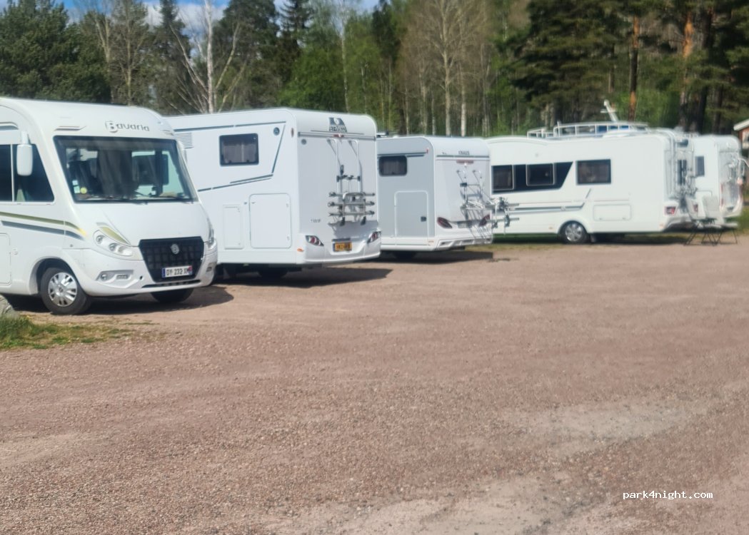 Stellplatz mit ausgewiesenen Wohnmobilplätzen direkt am Wasser und in direkter Nähe zu den Dalahäst-Schnitzern. Der Parkplatz sowie Trinkwasseranschluss sind kommunal und dürfen daher kostenfrei benutzt werden. Keinerlei Entsorgung von Müll, Grau- oder Schwarzwasser!
