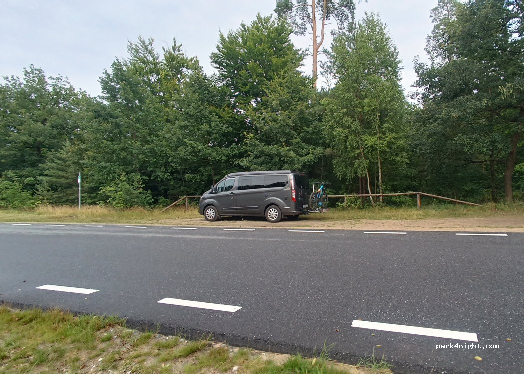 Schöner Platz mit Blick auf einen See und direkt im Wald. Parkplatz für 3 bis 4 Fahrzeuge. Liegt direkt an einer Straße, deshalb viel Straßenlärm. Anscheinend auch bei Anwohnern unbeliebter Platz, da vorbeifahrende Autos entweder beschimpfen oder hupen.
