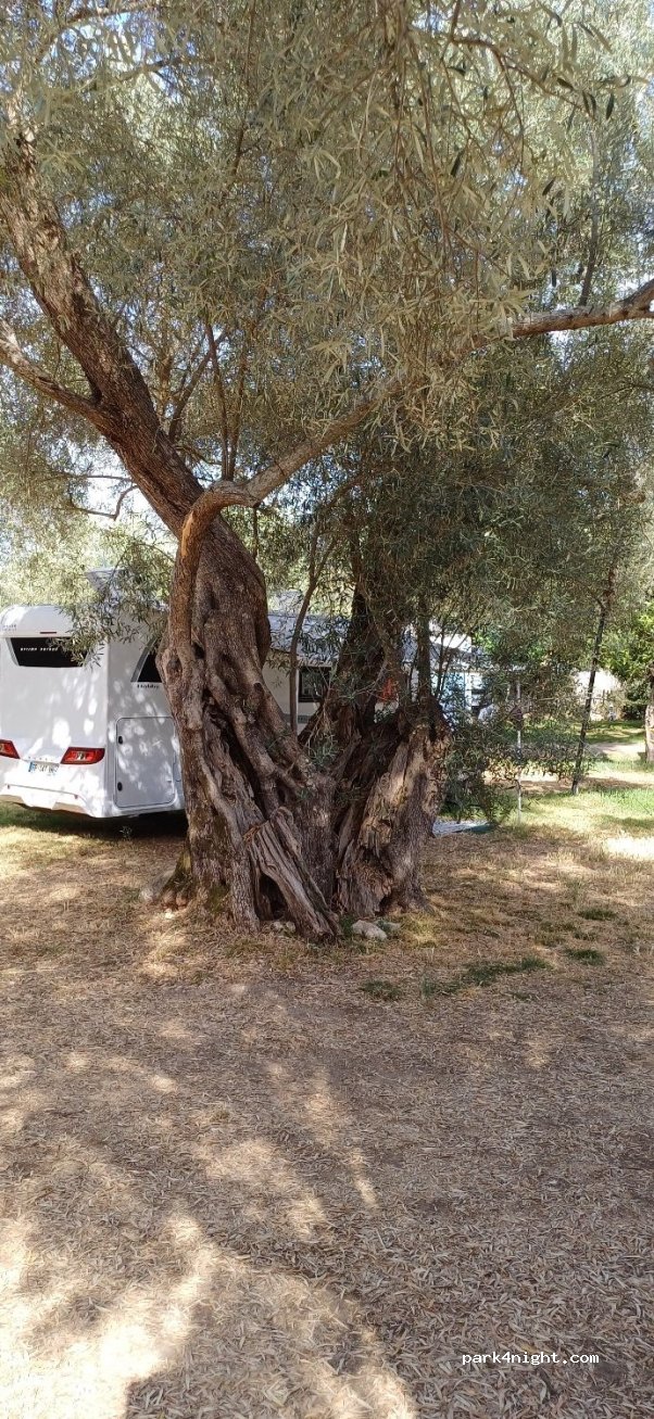 Petit camping familial semi ombragé par les oliviers, tranquille et propre. Belle piscine, petit bar resto, wifi. Éviter de vous placer devant la route, petite mais bruyante selon saison. Un frigo disponible et des plaques électriques sous abri avec tables et chaises. Attention aux gros camping-cars pas facile de manœuvrer dans le camping surtout si il y a du monde car les emplacements sont libres.