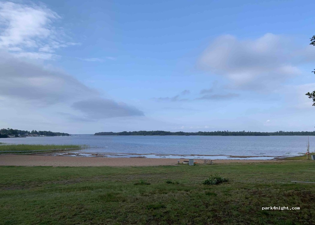 Parkeerplaats voor autos (waar je met de camper kunt staan ) geen bijzondere locatie. Er zit een zwemstrandje op 100/150 meter lopen. Hierbij zitten toiletten. Strandje is schoon, toiletten zijn schoon. Enkele plaatsen om een vuurtje te maken. Als je een plek voor de nacht zoekt is het een optie.