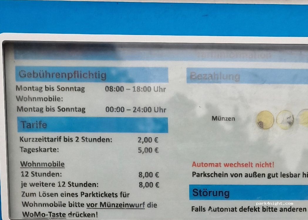 Achtung, für Wohnmobile ist es in der Nacht nicht frei, kostet für 12h 4€