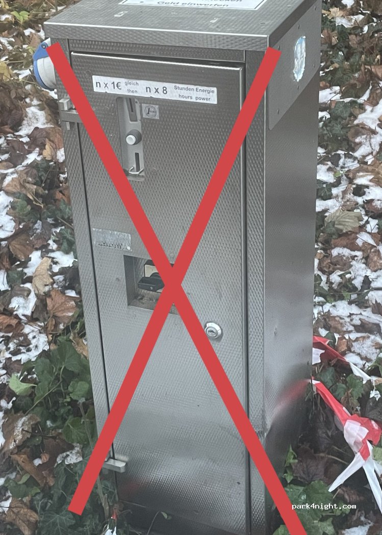 Leide keine Parkplätze mehr mit Strom. Aktuell sehr voll. Man steht etwas abschüssig.