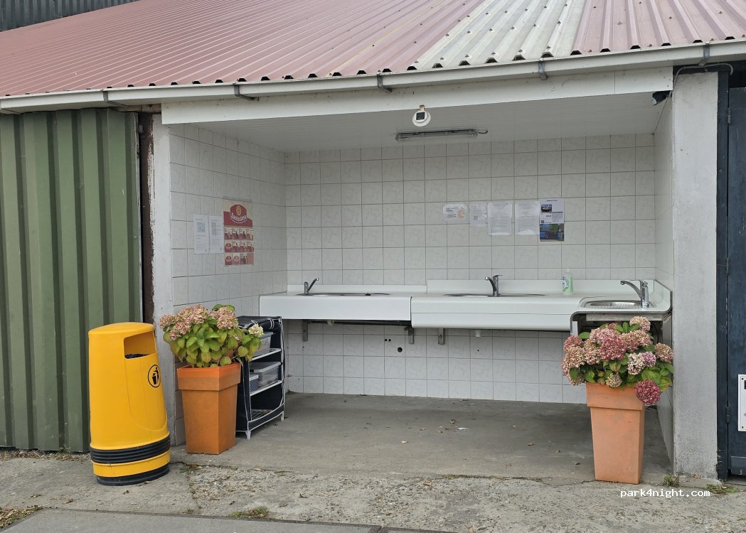 simpele camperplaats met stroompunten onder een plastic bak gestopt... verouderd sanitair.. op zich schoon ... alleen contante betaling mogelijk 20 euro per nacht .. douchen 0.50 cent .. koeien lopen voorbij ..het heeft wel charme.. voor mij als tussenstop goed te doen .. alleen prijs kwaliteit verhouding vind ik matig..