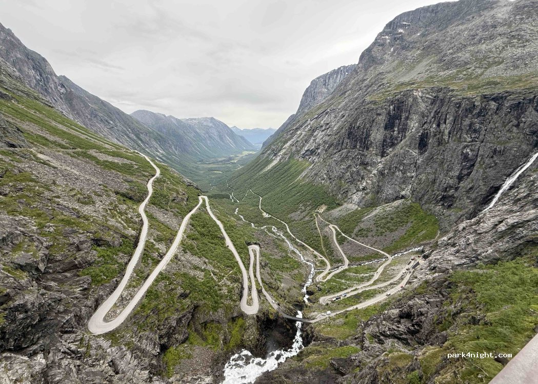 Zeer ongezellige camping vlak aan de weg. Het heeft mij echter niet wakker gehouden. Alles is inclusief ook wasmachine en droogtrommel. Douches zijn prima. Wees verstandig en vraag per persoon een badge anders kan de ander niet douchen. Of bedenk een oplossing. Het ligt vlak aan de route naar de Trollstigen maar eerst aan uw rechterhand een geweldige waterval. Ga even de auto uit en ga het bekijken. Echt mooi. Onderweg naar de Stigen lekker aardbeien gekocht. Super lekker
