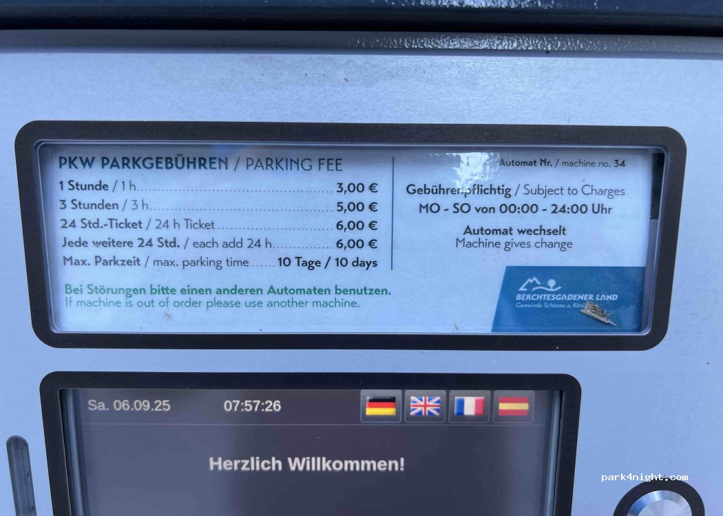 Parking as the starting point for many hiking trails. No problem! During the day, the toilets are open. Nice view of the valley and the Kehlsteinhaus.