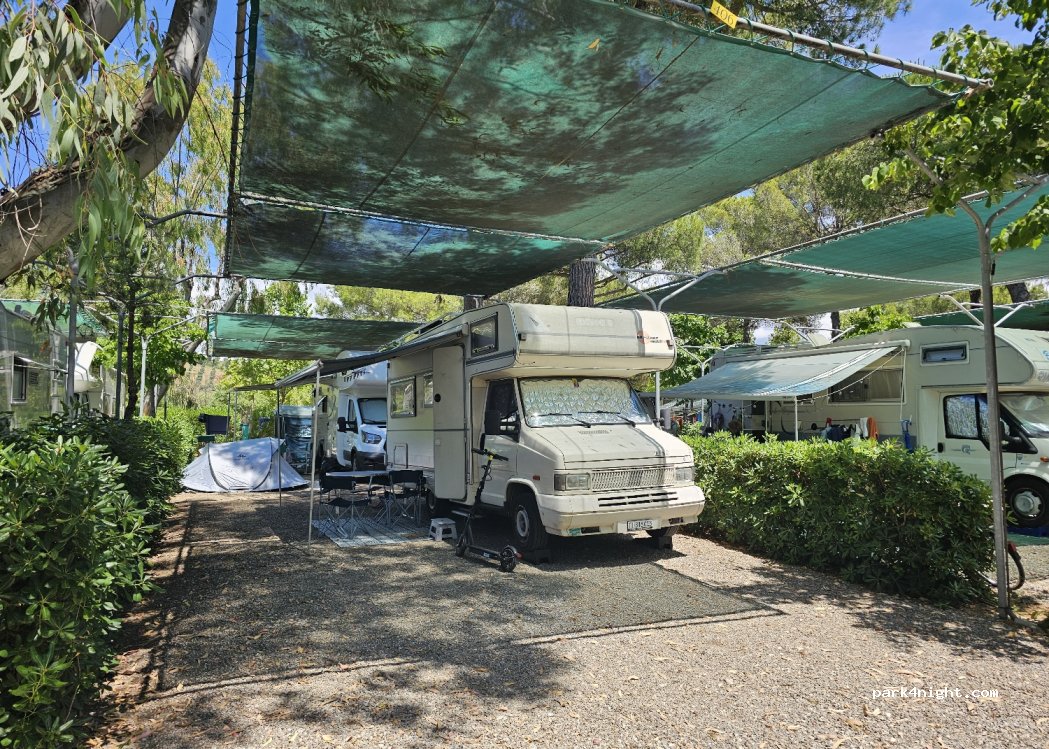 Nous y sommes venu mais aussi revenu tellement nous avons apprécié la qualité du Camping. En route pour Rome nous avons découvert un camping géant avec 1144 places, piscine avec bonnet mais des animations, qualité des cocktails pas cher, un snack normal mais pizzas du restaurant superbes et copieuses. Les emplacements sont très grands, les sanitaires sont refait dans un style hyper moderne. Les plages sont accessibles en face du camping, il faut libérer à 10h mais le camping nous permet de poursuivre chez eux si l’envie nous prend en se garant à l’extérieur avec parking sécurisé. Emplacement ombragé. Favoriser les places proches de la piscine plutôt qu’au bout du camping car la voie ferrée reste proche.