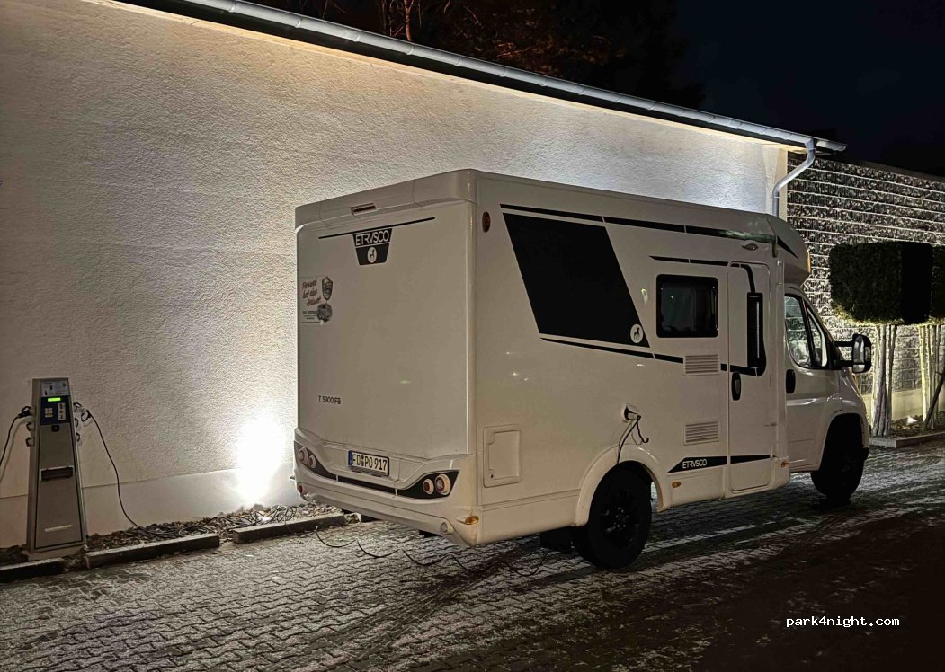 Ein ebener, sauberer, ruhiger Parkplatz hinter dem Wellnesshotel. Mit Hunden schnell im Grünen und 2 km mit dem Rad in die Altstadt. Duschen und Entsorgung inklusive. 15 € für 3 volle Tage, was will man mehr.