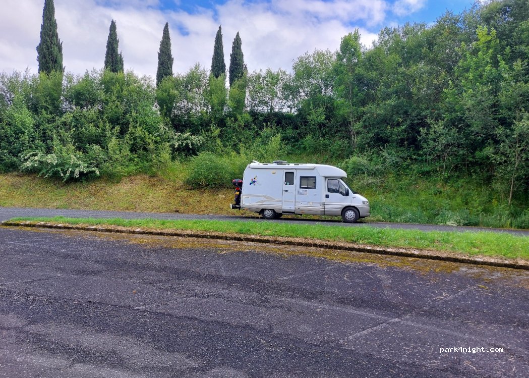 Excellent, peaceful stopover in a quiet, safe place. Permission obtained from the small shop (opens from 4pm). Very helpful staff - showed us around - use of a toilet and shower, if needed and we also had an invite to the Pilgrims’ dinner at 8pm. Shop serves a local beer - 3 styles, all of which tasted good. Pitches have a slight slope. Water is available, but not to fill van.