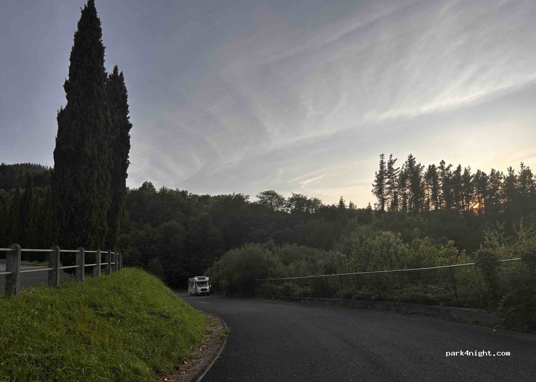Wij stonden hier op een parkeerplaats bij een klooster. We waren de enige die hier stonden. Nog wat bier en wijn gescoord in het klooster winkeltje. Prima plek voor een overnachting.