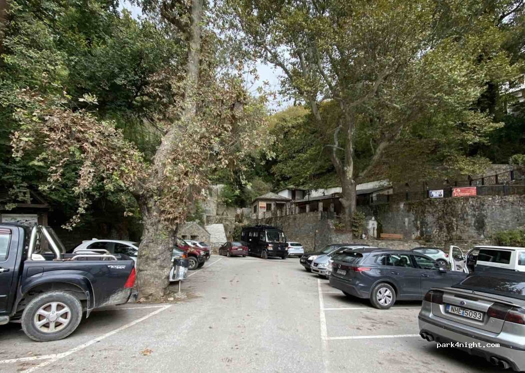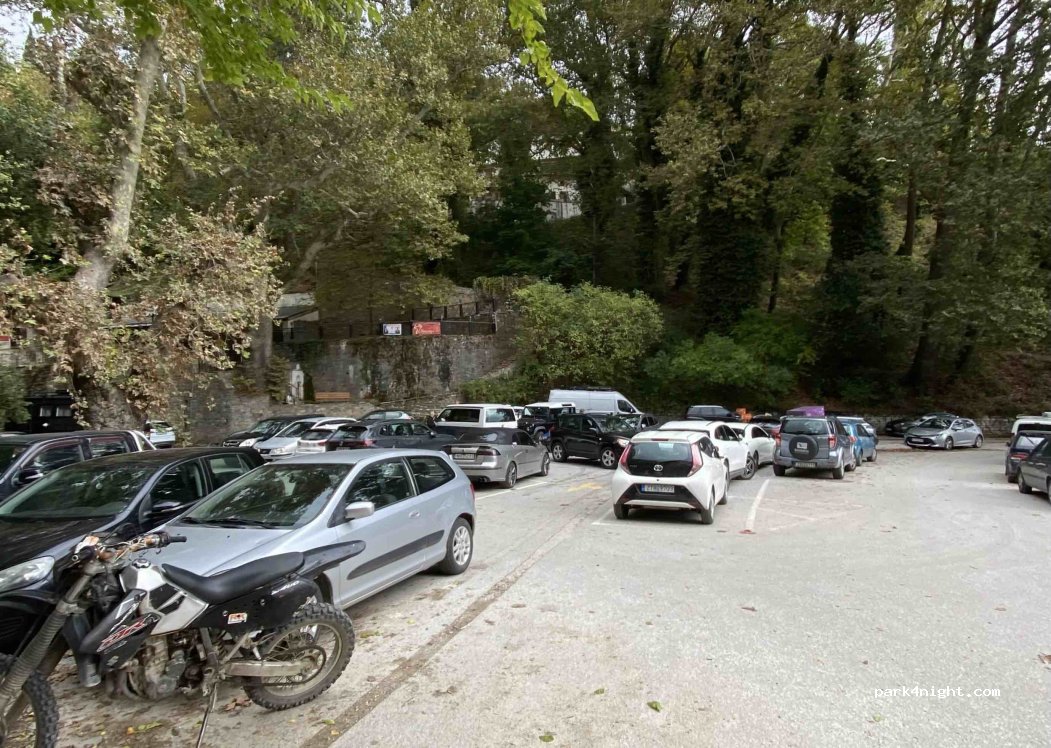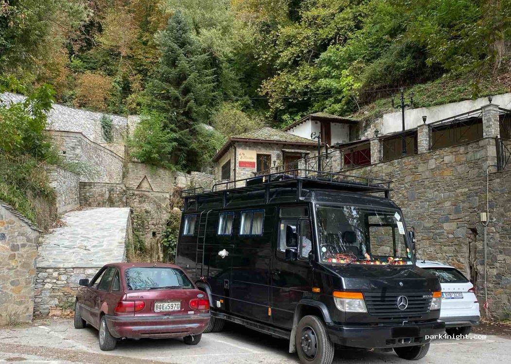 Parking of Makrinitsa. In summer it is difficult to find a place, but if there is one, very quiet, ideal to spend the night at the entrance to the Pelion Peninsula. Not recommended for campers.