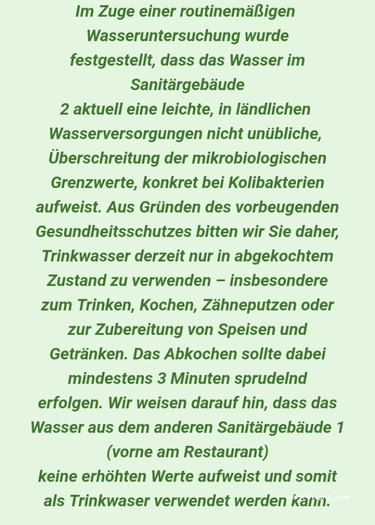Wir wollten eine kleine Pause auf unserer Motorradtour einlegen und Bekannte auf dem Campingplatz besuchen, die dort einen Platz gebucht haben. Direkt am Eingang wurden wir vom Besitzer (vermutlich) forsch angesprochen, was wir denn hier wollen.Er verlangte direkt 2€ pro Person Besuchsgeld, die wir für 30min nicht bereit waren zu zahlen und gingen wieder.Der Platz an sich scheint aber in Ordnung.