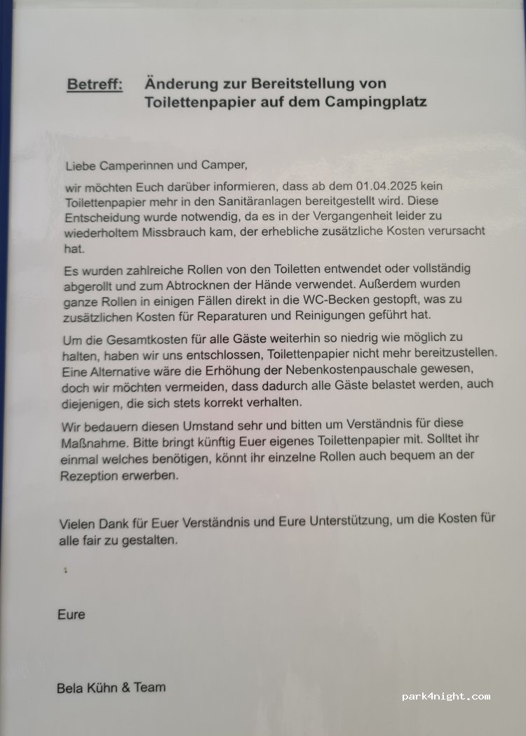 Wir haben auf der Heimreise eine Nacht dort verbracht. Den vorab gebuchten Stellplatz haben wir nicht bekommen, ebenso konnten wir nicht duschen, da wir keinen Schlüssen bekommen haben. Party und laute Musik bekamen wir kostenfrei bis 02:00 Uhr Morgens obendrauf. Nach fast 1000km Anfahrt war an Ruhe also nicht zu denken.