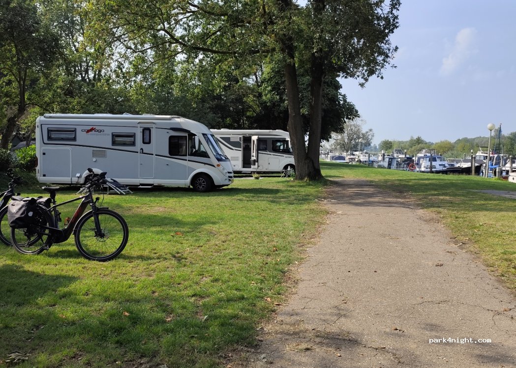 Prima camping/camperplek. Uitzicht over de jachthaven. Parkeren in het gras (verharde ondergrond) tussen hoge bomen die voldoende schaduw bieden. Netjes sanitair (met douchemunten). Wasmachine en droger beschikbaar tegen betaling. Je hoort de snelweg op de achtergrond, maar zeker niet storend. Vriendelijke ontvangst. Goede prijs-kwaliteitverhouding. Ruime afstand naar winkels en binnenstad Zwolle