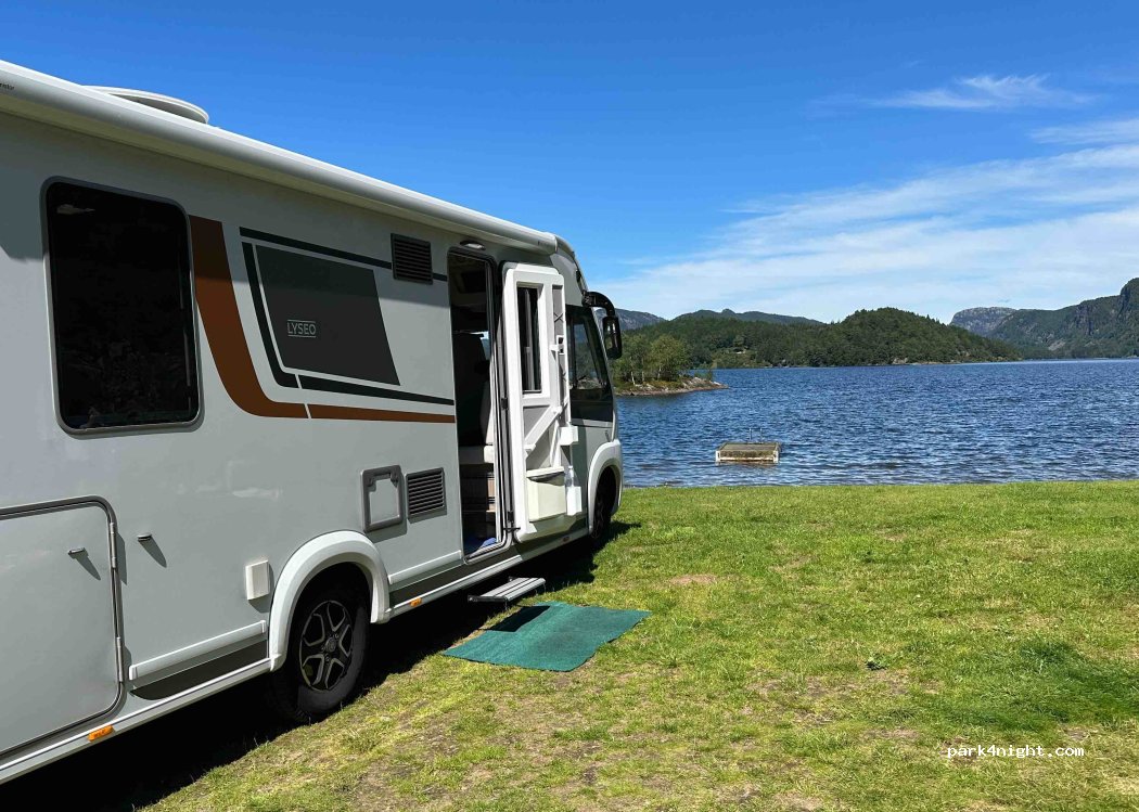 Gute Lage am See. Sonne am Morgen gibt es auf den Stellplätzen mit niedrigeren Nummern (10nee, 30iger), dort höhrt man die Fernstraße auch kaum. Top Duschen WC! Nur der Preis ist großzügig 450 NOK inkl. Strom.