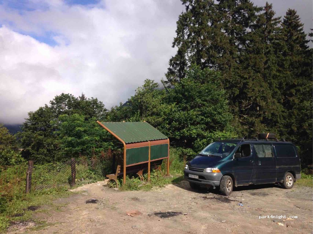 Une petite aire de pique-nique juste au bord de la route qui mène à la station balnéaire d'Ayder. Ayder est situé dans un parc national, entouré de magnifiques montagnes, forêts et cascades. Pas trop de circulation et vue fantastique. L'entrée au parc national est de 11 TL. Remarque : beaucoup d'espaces supplémentaires sur la route.