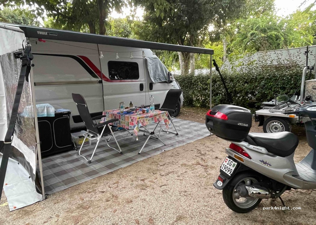 Fünf Tage im Oktober haben uns gefallen: Platz nicht mehr so voll, viele freie Stellplätze, Restaurant noch offen. Gut für Radtouren! Verkehrsarmer Eurovelo-Radweg führt 800 m entfernt im Hinterland vorbei. Prima für Tour nach Peschiera und weiter am Fluss Mincio entlang nach Mantova. 26 Euro haben wir bezahlt für 2 Personen und einen einfachen ruhigen Platz.
