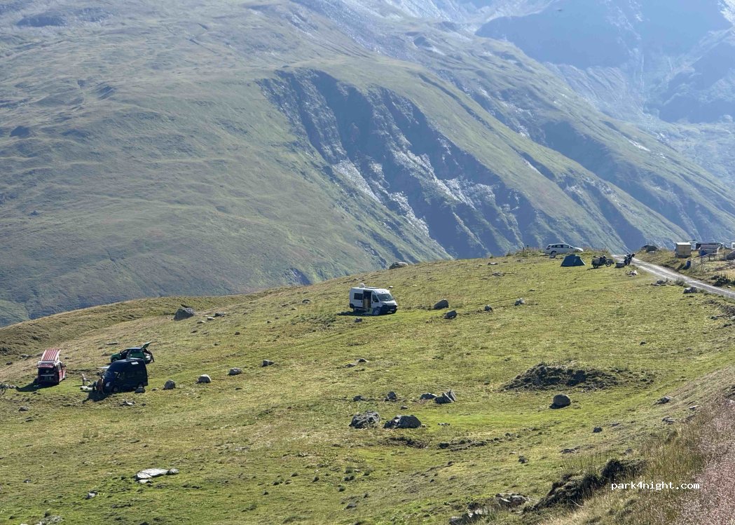 Simple and basic little lay-by with stunning views and an excellent start point for many an adventure. Mountain water fountain just up the road but no other facilities.
