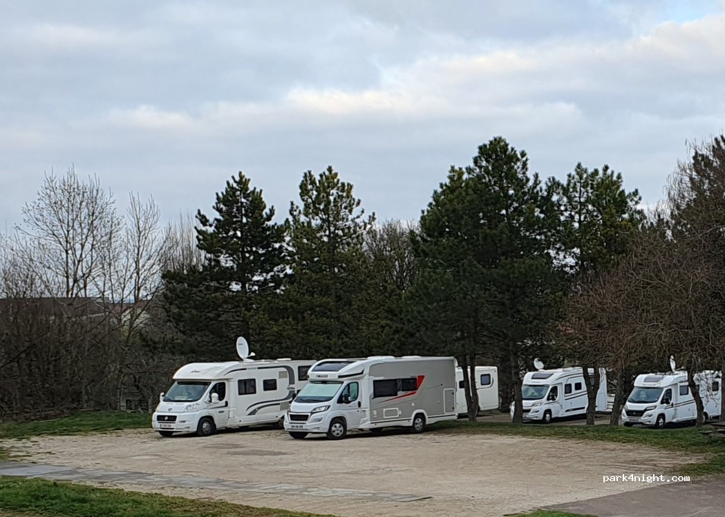 Accès facile, nombreuses places à plat. Services gratuits ( artisanal) pas de borne, robinet d'eau , trappe wc, trail eaux grises. Merci a la municipalité de cette gratuité, nous en avons profité pour visiter la ville et consommrer, glaces, souvenirs et achat champagne producteur. Vous avez tout compris.