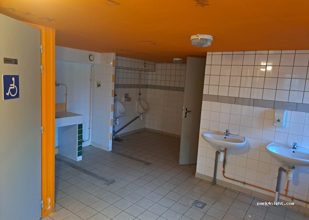 Ce parking est parfait. Des toilettes avec lavabos et un lieu pour nos toilettes à l'extérieur avec un robinet de rinçage mais pas d'évacuation des eaux usées