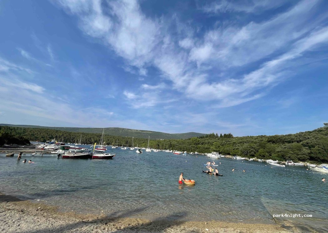 Ruhiger, kleiner CP mit Schattenplätzen, einem gut sortierten kleinen Markt, sauberen Sanitäranlagen, netten Betreibern und einem leckeren Restaurant. Der Badeabschnitt eignet sich besonders für Familien mit kleinen Kindern, man kann toll mit dem SUP an der Bucht entlang fahren, zum typisch kroatischen Schwimmen und Schnorcheln für unsere Wünsche allerdings nicht ganz optimal. Preis voll okay.