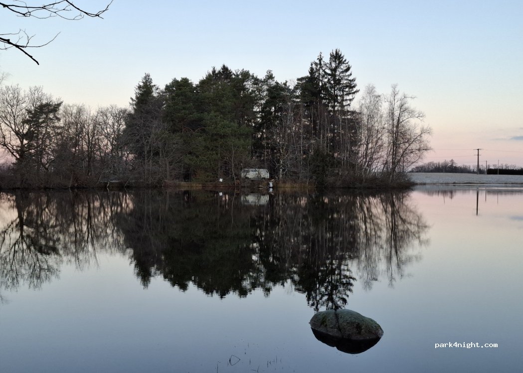 Super petit coin tranquille en bordure d'étang. un seul emplacement pour un petit véhicule pas haut.