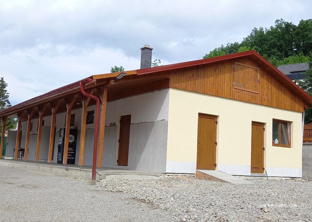 Geheel nieuw gebouw voor douchen en toiletten. betaalde € 18,= 1 persoon camper per nacht. Vuurtje stoken mag. Plaats Kumlov is leuk maar touristisch. Gratis rondleiding vanaf grote plein. info bij tourist office op het plein.