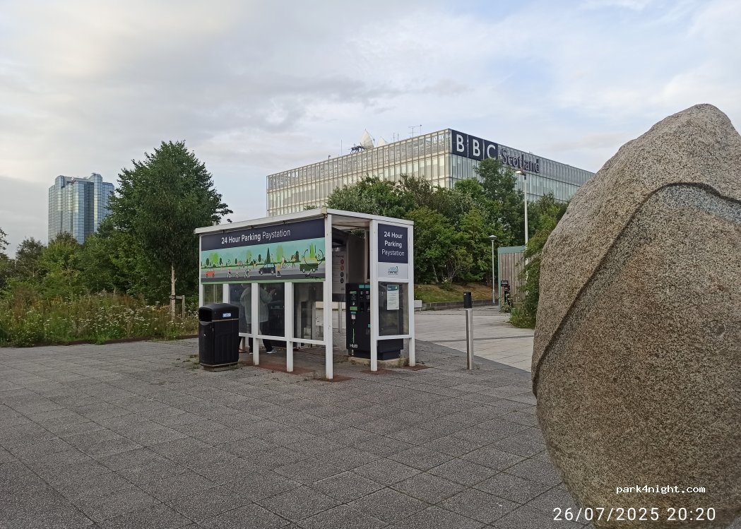 stayed overnight in this spacious car park. there’s a road adjacent but it’s very quiet at night. went through for a show at ovo hydro. secc and hydro is reached by 2 footbridges over the clyde, either side of the bbc scotland building. costa at premier inn and starbucks at the village few mins walk away. £15 for 24hrs, will be back for future gigs/shows.