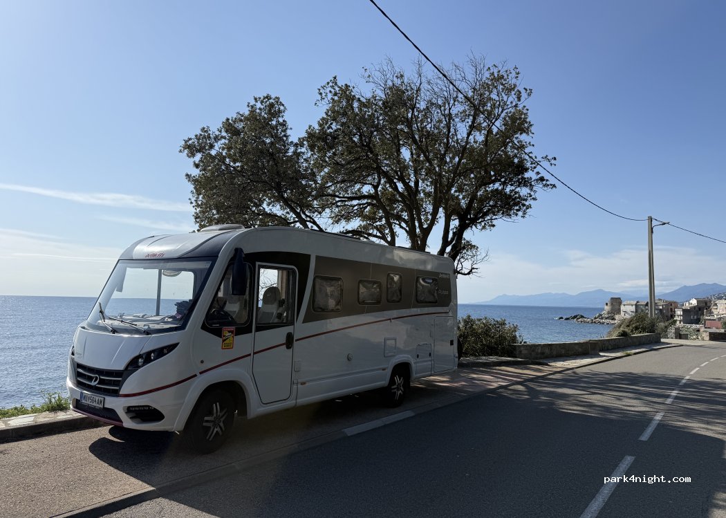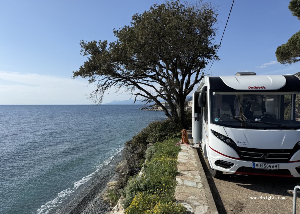 Abbiamo passato una notte prima di partire da Bastia. Parcheggio sulla strada un po stretto, le macchine ti fanno ondeggiare al passaggio. Rispetto alle foto una parte del parcheggio è franata. In compenso c’è l’accesso diretto alla spiaggia con una vista magnifica sul mare