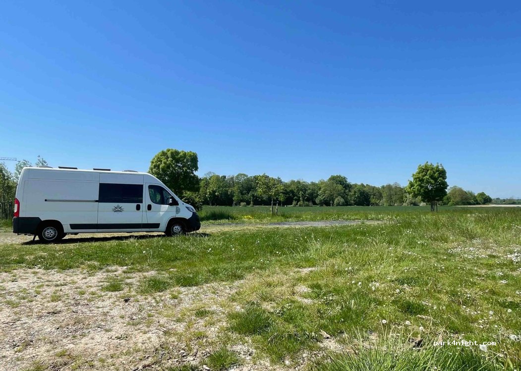 Großer kostenloser Parkplatz. 50m zum schönen warmen! Baggersee. Etwas nah an der Straße, aber okay. Haben am Rand gestanden und übernachtet. Nicht überfüllt trotz Wochenende und 1A Wetters. Schönes angenehmes Lüftchen.