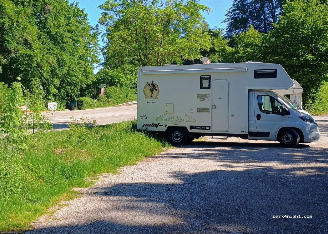 großer Parkplatz, kein Übernachtungsverbot. Straße in direkter Nähe störte mich nicht! Auch für größere Wohnmobil geeignet.
