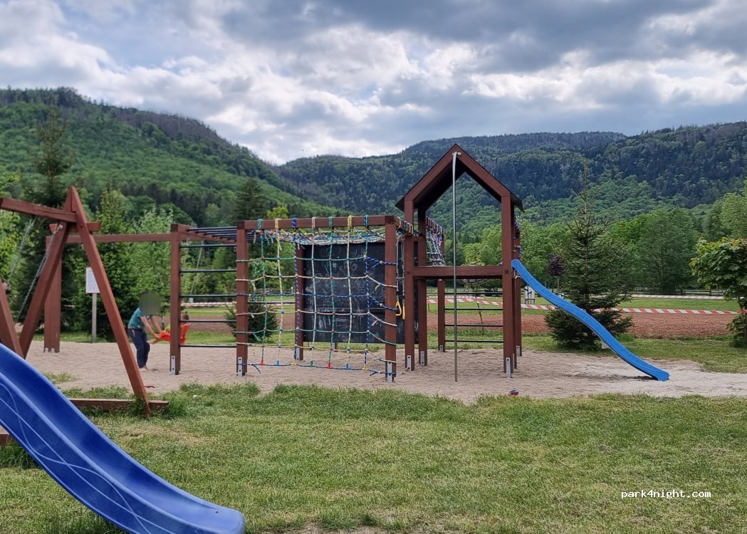 Very quiet and peaceful location. At walk distance from artificial lake where you can swim, and the National Park of Gory Stolowe. Good restaurant, clean toilets and showers. Friendly for kids and dogs.