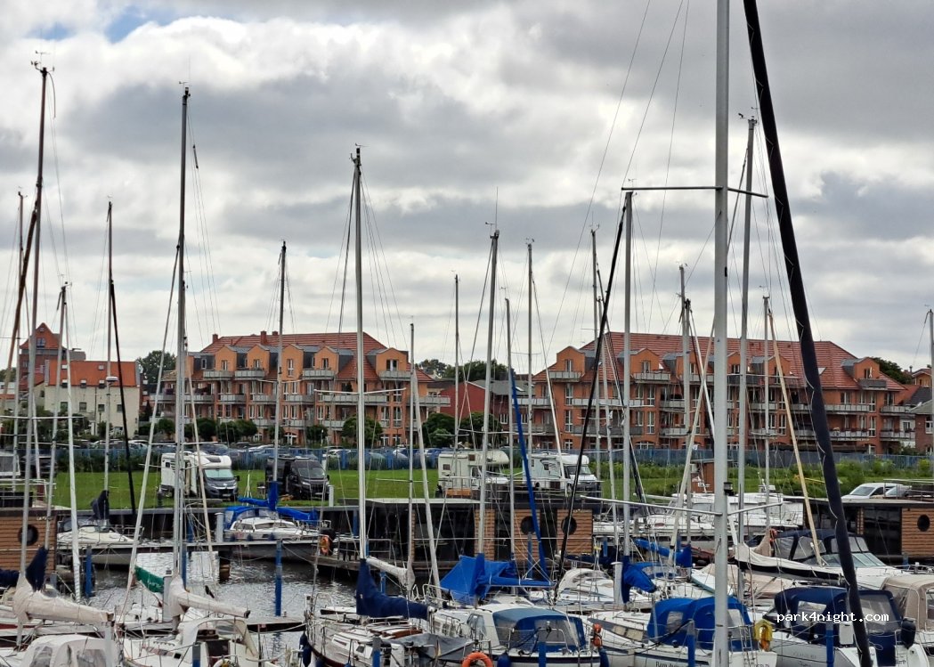 Stellplätze mit freier Platzwahl auf Wiese direkt am Hafen. Freundliche Begrüßung und Einweisung. 27,5 € pro Nacht für WoMo und 2 P inkl. Strom und Entsorgung-ist ok. Leider gab es einige Hundebesitzer die freie Stellplätze zum Gassi gehen verwendet haben - igitt, es braucht anscheinend für alles Verbotsschilder.