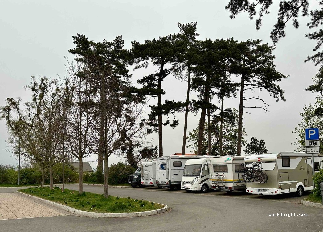 Der Stellplatz liegt uberhalb dem Kiosk Parkplatz. Einfahrt geradeaus hochfahren und nicht links auf den Kiosk Parkplatz (Etwas verwirrend). Bezaht wird am Automaten 6euro 24h. Strom 1euro Stücke bereithalten.