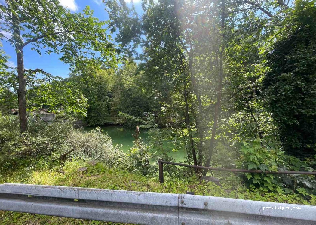 Was für ein genialer Platz für kleine & unauffällige Wohnmobile. Natürlich schläft man hier mit Ohrstöpseln (besser)... Zwischen 18 und 8 Uhr sowie die ersten zwei Stunden sind stets frei. Fünf Sterne alleine, weil im Bach direkt vorm Mobil ein Biber patroulliert und sich darin dicke Forellen tummeln. Genial.
