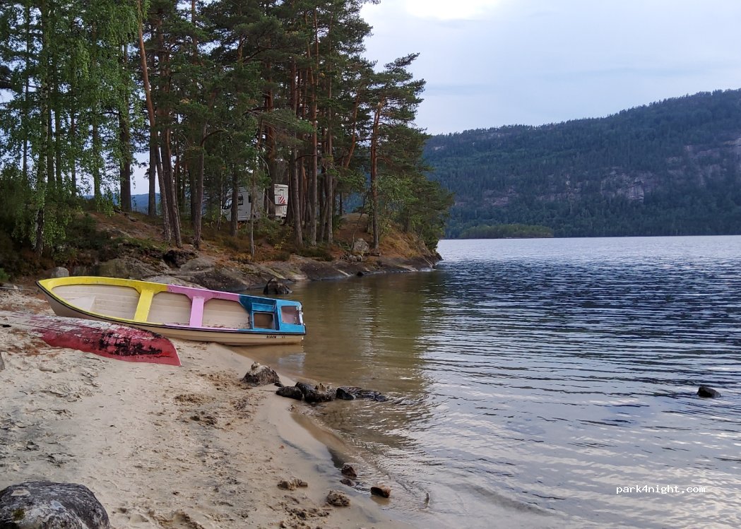 Ein perfekter Stellplatz direkt am Fjord. Der Lärm der Autos ebbt nachts stark ab. Am Wasser ist Platz für 2-3 Wohnmobile.