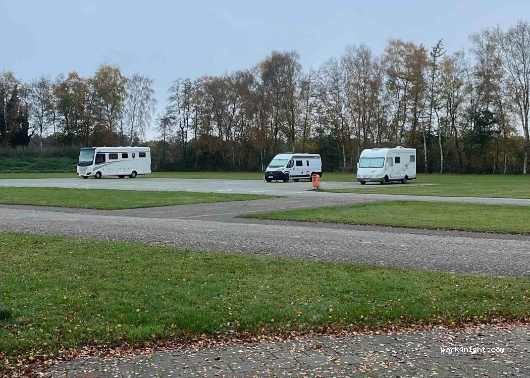Great overnight stay on a large, quiet and clean parking area. Perfect for bike touring and dog walking. Shops are within a 10 minute walk.