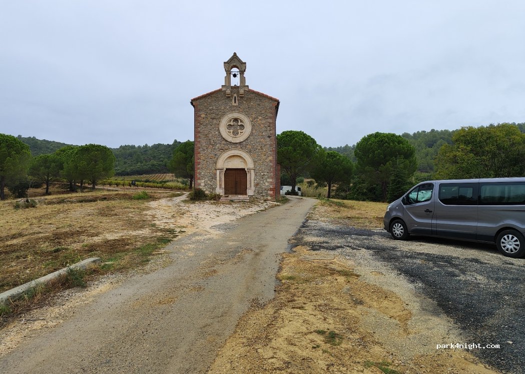 très joli endroit près de la route mais on entend pas trop la route pas de poubelles, ni toilettes dommage que 2 gros vans se soient installés en laissant peu de place pour les autres, du coup on s'est mis sur le devant de la chapelle.
