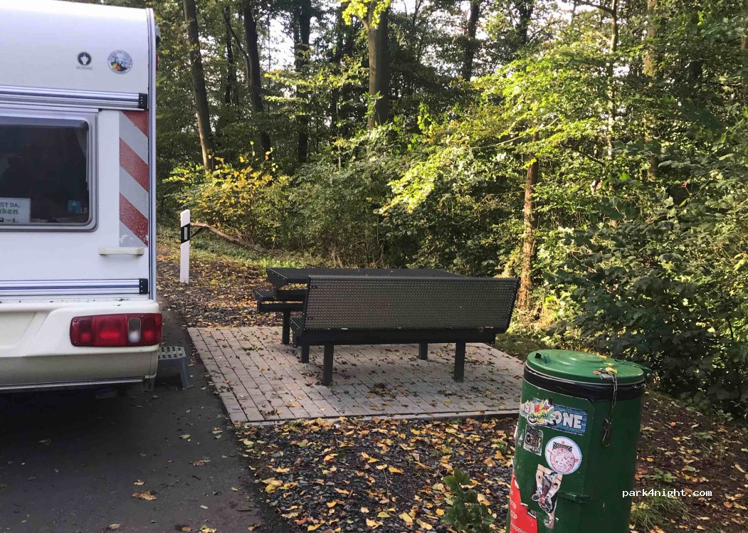 Ist eher ein Parkplatz an der B275. Schön versteckt stimmt, eine Sitzgruppe aus Metall gibt es auch inklusive Mülleimer.