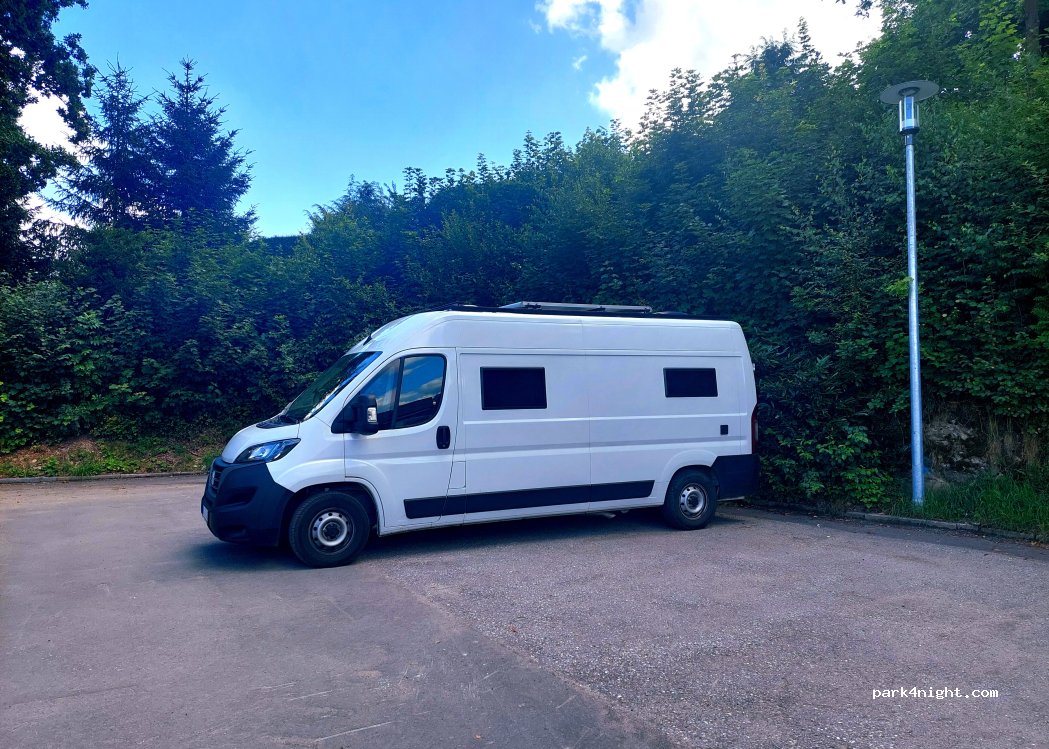 Stellplätze auf asphaltiertem Parkplatz beim Vereinsheim der Schützenbruderschaft. Kurze, steile Auffahrt. Platz eben und schöne Aussicht. Restaurants und gute Einkaufsmöglichkeiten in Laufweite.