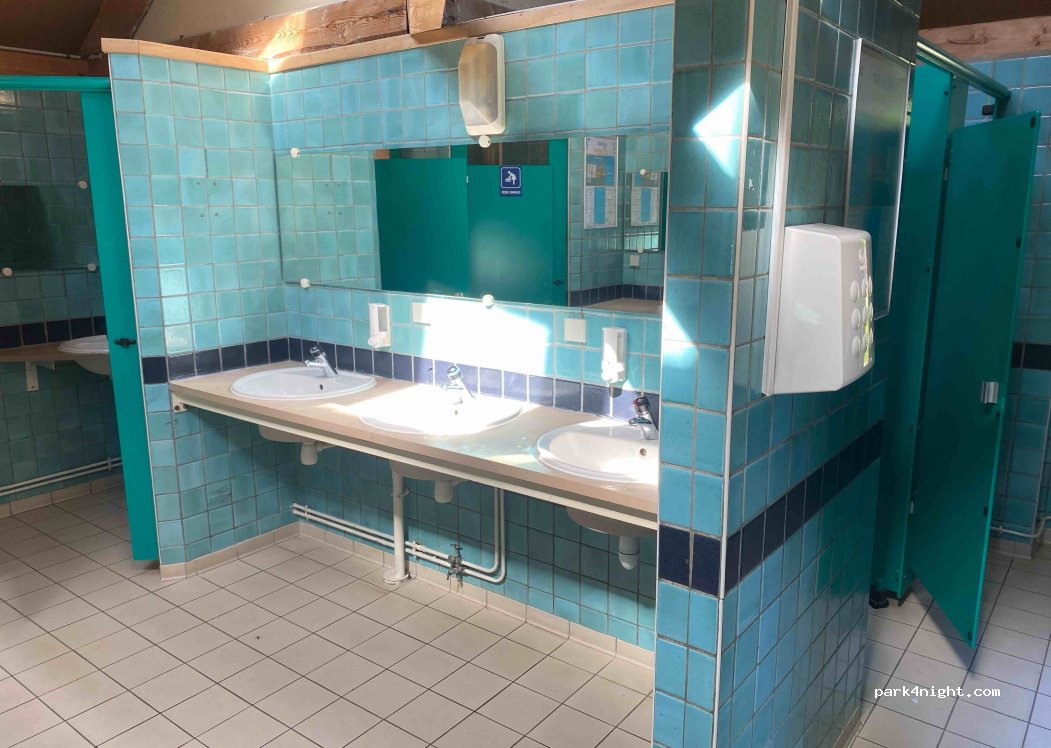 Bien placé, bon accueil. Bac et parois des douches auraient besoin d’un bon coup de brosse. Eau chaude appréciée.