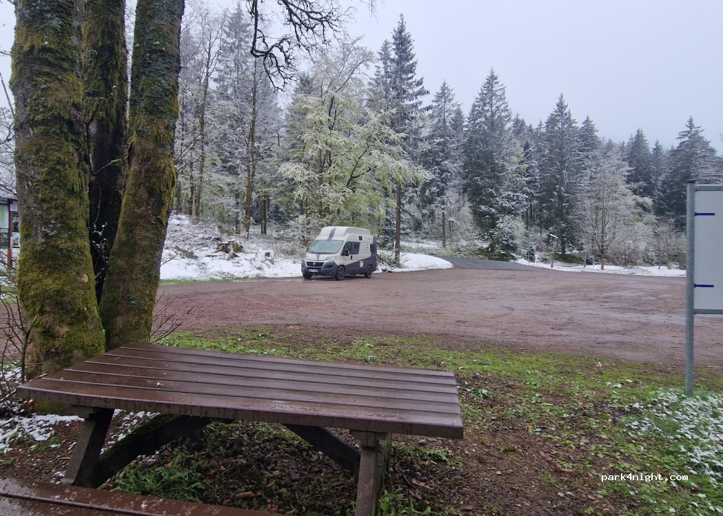 Ein wunderschöner ruhiger Stellplatz, mitten in der Natur. Ich hatte eine ebene Fläche zu stehen. Die Stasse war kaum befahren. Fußläufig ist eine tolle Aussicht vorhanden. Ich selbst hatte Ende April einen schneereichen Tag auf dieser Anhöhe. Unten im Tal war war wieder alles grün.